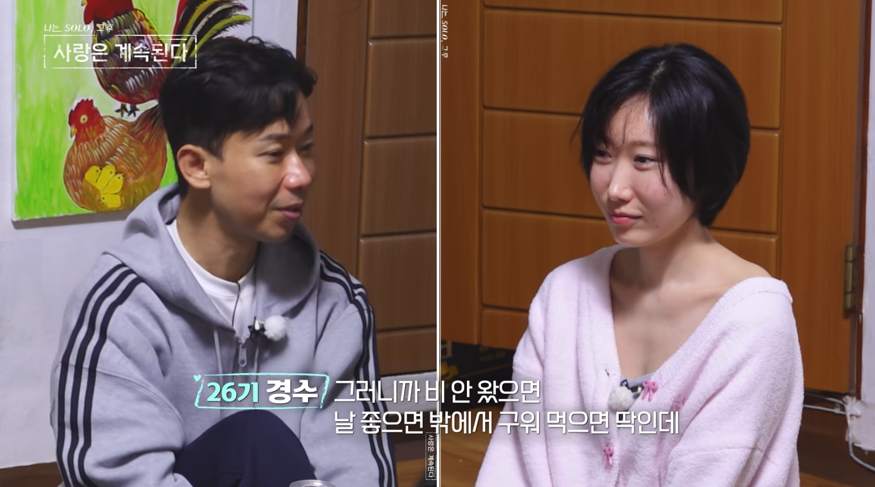 26기 경수가 공용 거실에 온 순간 용담의 눈빛이 반짝반짝 빛나기 시작했다. 좋아하는 사람 앞에서 어쩔 줄 모르는 모습이었고 둘만의 대화를 시작했다. 저녁에 뭐 먹었는지 물어보고 26기 경수는 용담이 어떤 음식을 좋아하냐고 말했을 때 용담은 고기라고 말했다. 26기 경수는 비가 안 왔으면 밖에서 고기를 구워 먹었을 텐데 하며 아쉬워하자 용담이 용기를 내서 고기를 먹으러 가자고 말했고 26기 경수는 얼떨결에 그러자고 말했다. 방으로 돌아와서 26기 경수는 22기 상철의 말을 듣고 용담의 데이트 신청이었다는 것을 알고 공용 거실에서 용담을 기다렸다.